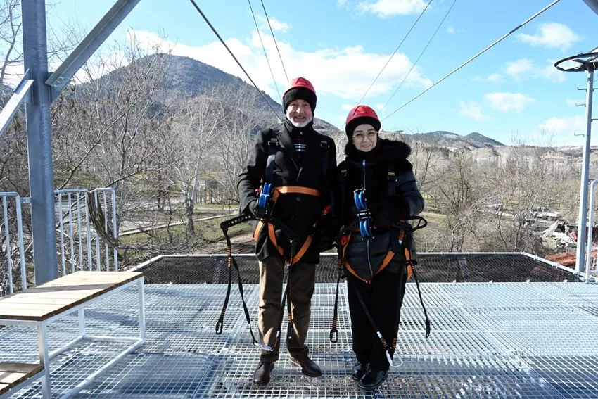 Konuşmaların ardından duayla birlikte zipline tesisinin açılış kurdelesi kesildi. Daha sonra Belediye Başkanı Şükrü Başdeğirmen ve eşi Şadiye Başdeğirmen, zipline deneyimi yaşadı.
