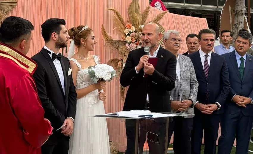 Eski İçişleri Bakanı ve AK Parti İstanbul Milletvekili Süleyman Soylu, Isparta’da Tahir ve Şerife Alan çiftinin kızı Aybüke ile Ali Borazan ve Şükran Nazoğlu’nun oğlu Nazmi’nin nikah törenine katıldı.